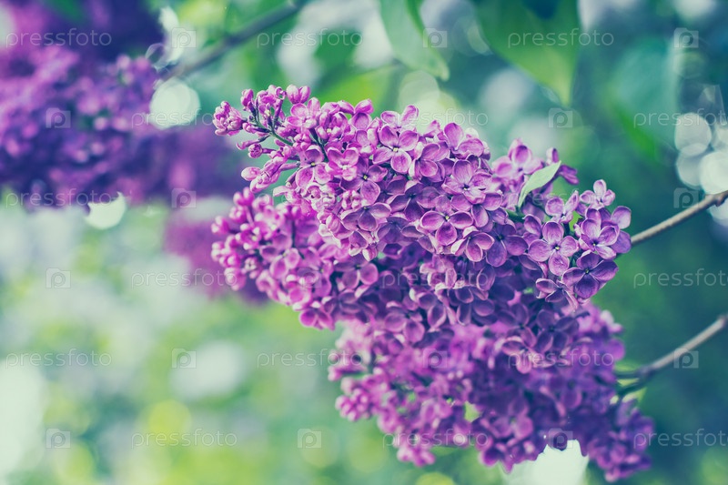 Зеленая ветка с весенними цветами сирени