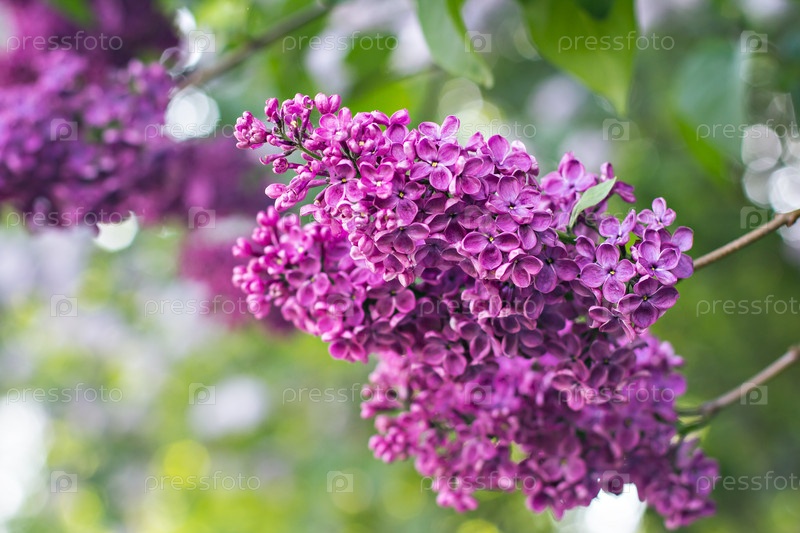 Зеленая ветка с весенними цветами сирени