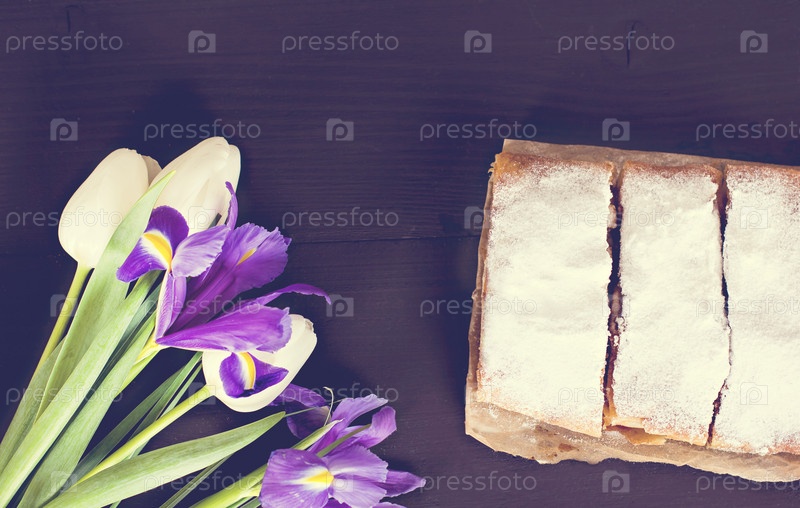 Пирог и украшение весны на темном фоне
