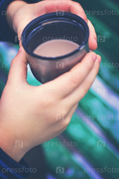 Чашка с горячим напитка в детских руках