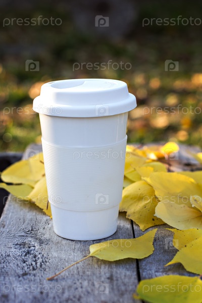 Чашка кофе и желтые осенние листья