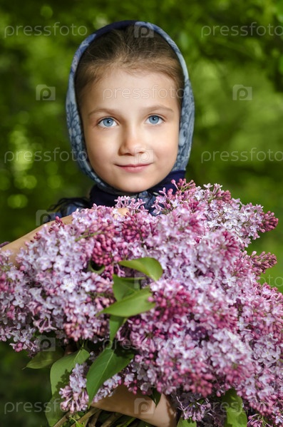 Маленькая девочка с цветами сирени