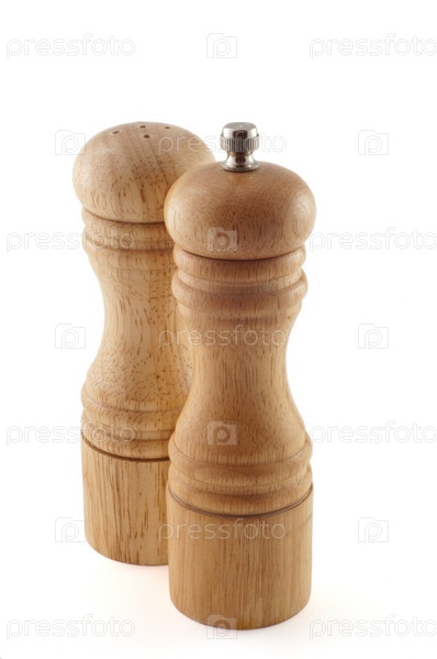 Солонка и перечница на белом фоне
