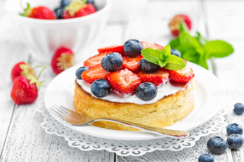 Вкусный ягодный чизкейк со свежей клубникой и черникой