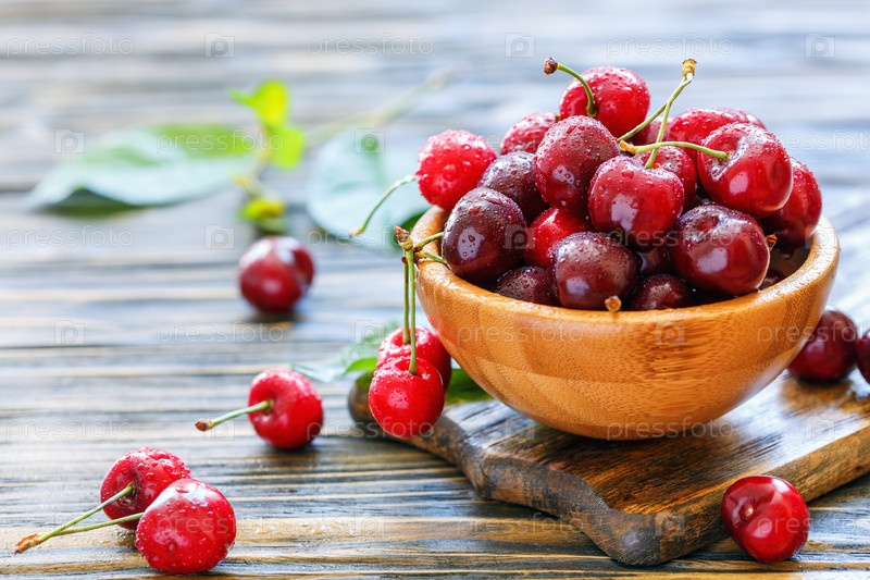 Деревянная чаша с красной черешней