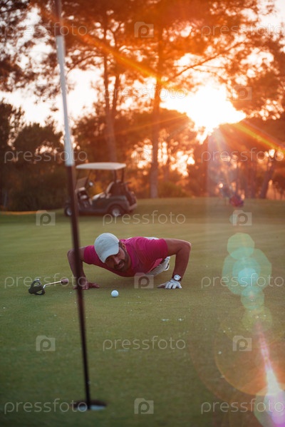 Игрок в гольф дует на мяч