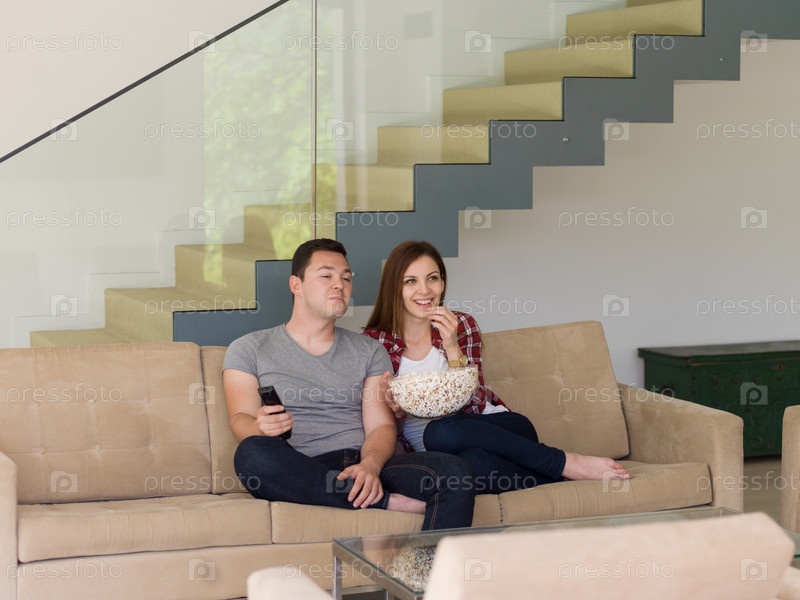 Молодая красивая пара за просмотром фильма