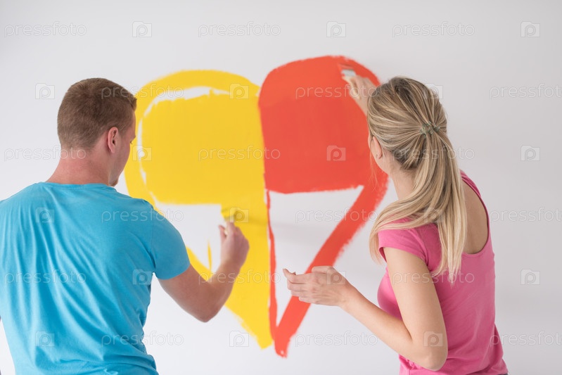 Пара рисует сердце на стене