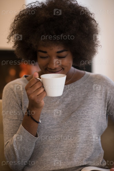 Черная женщина, читающая книгу перед камином