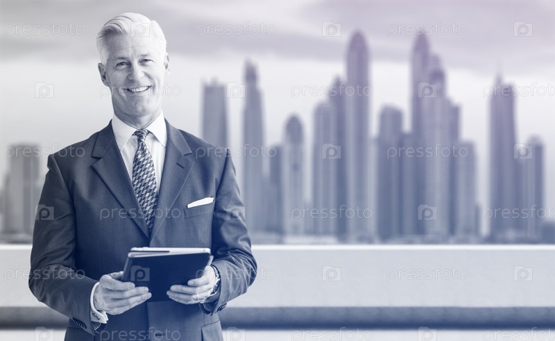 Старший бизнесмен перед большим городом