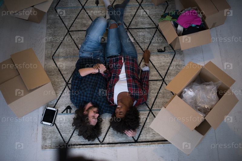 Вид сверху привлекательной молодой многонациональной пары