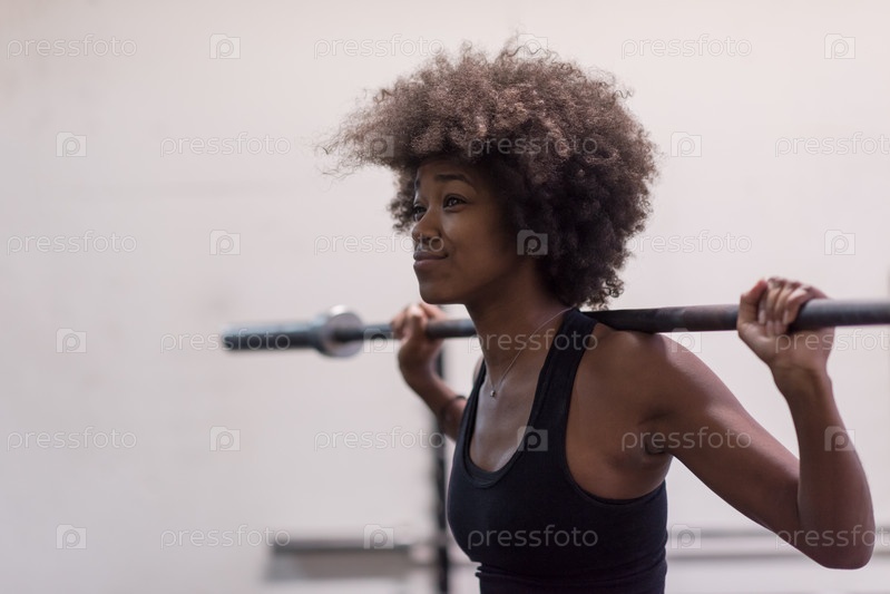 Черная женщина со штангой