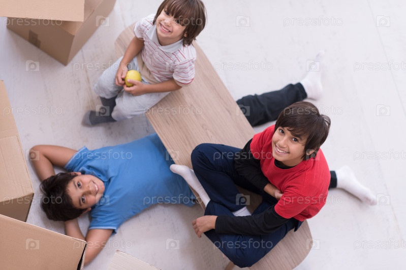 Мальчики с картонными коробками
