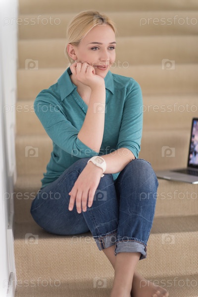 Портрет молодой красивой женщины на лестнице