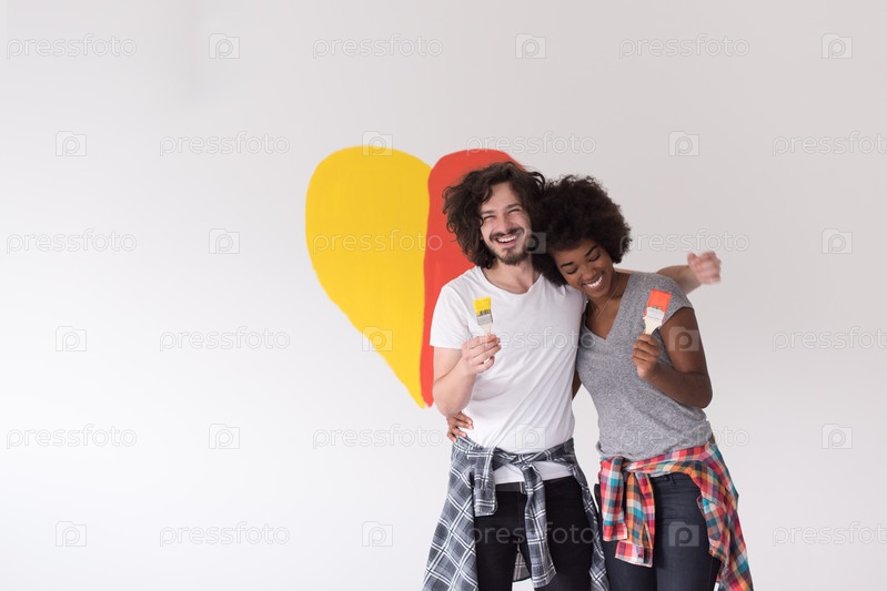 Пара с нарисованным сердцем на стене