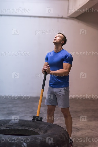 Тренировка человека с помощью шины и молотка