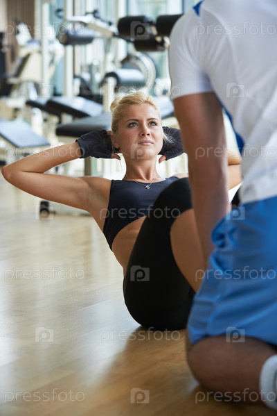 Молодая спортивная женщина с тренером