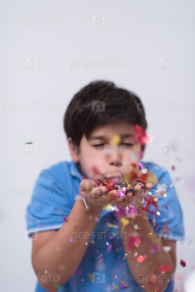 Ребенок дует конфетти