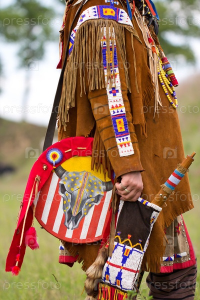Член исторического клуба в костюме индейца времен Американской гражданской войны между Севером и Югом, Украина