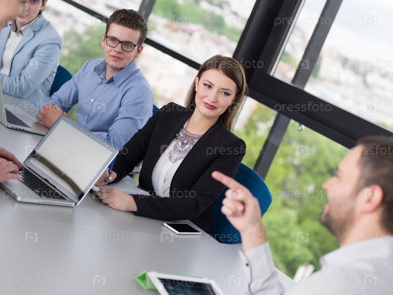 Бизнес-группа на совещании в современном офисном здании