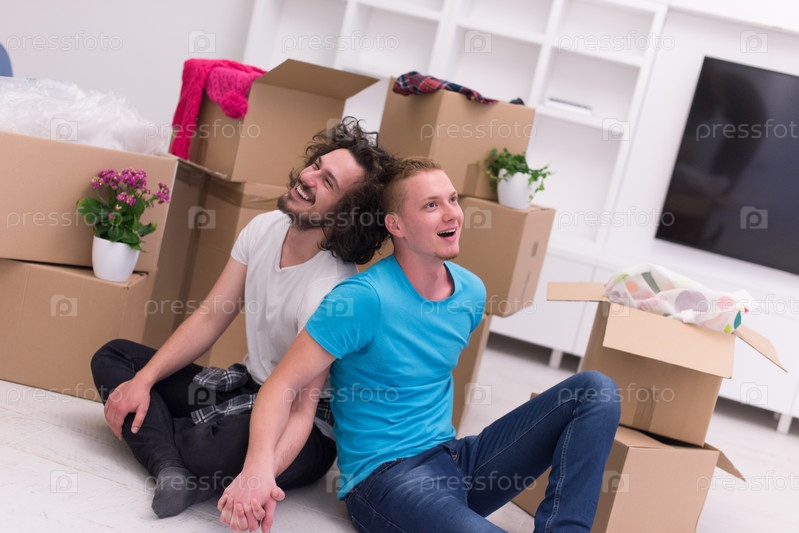 Молодая гей-пара в новом доме