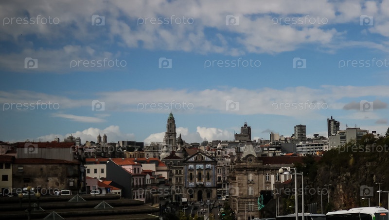 Панорама с высоты птичьего полета в Порту на закате, Португалия