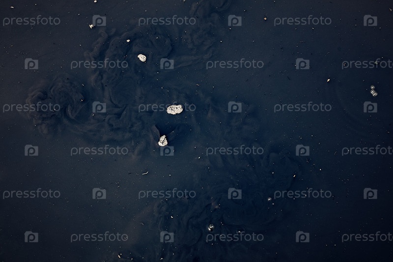 Грязные масляные пятна на поверхности воды