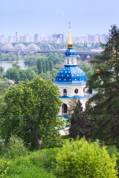 Киевский Ботанический сад. Вид на Выдубицкий монастырь и левый берег реки Днепр