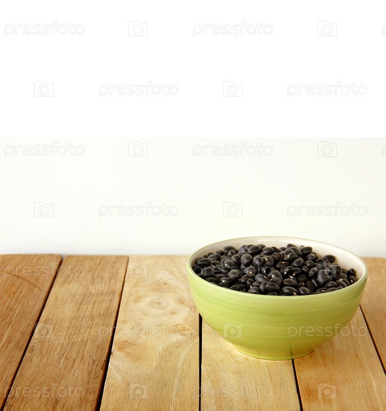 Черные бобы на деревянном фоне