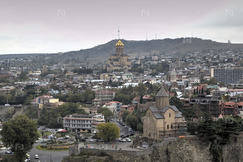 Панорама центра города с крепостью Нарикала. Тбилиси. Грузия