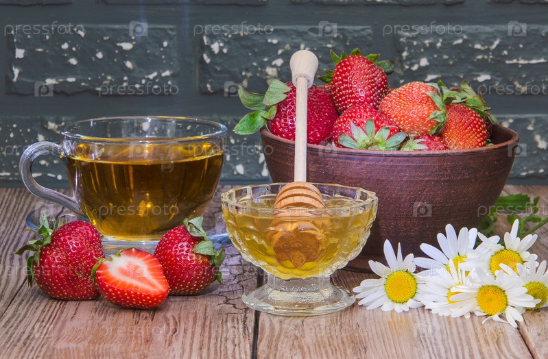 Клубника в миске и мед