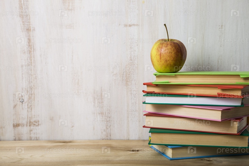 Яблоко на стопке книг