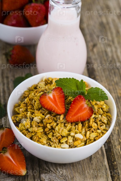 Гранола и коктейль с клубникой