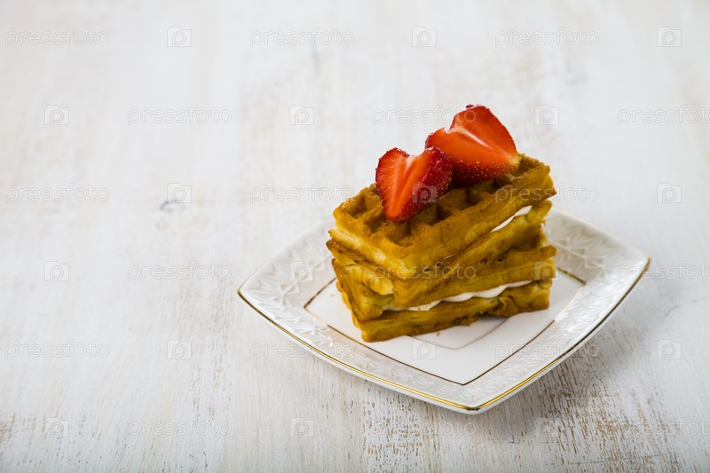Бельгийские вафли с клубникой