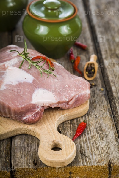 Сырая свинина на деревянной разделочной доске