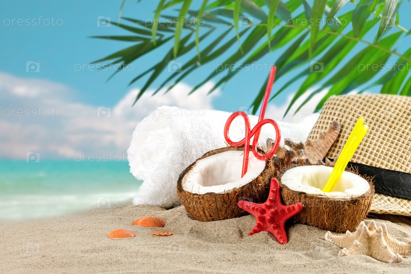 Коктейли в кокосах на пляже