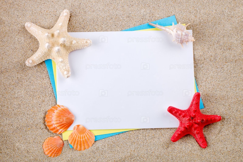 Морской фон с ракушками и морской звездой
