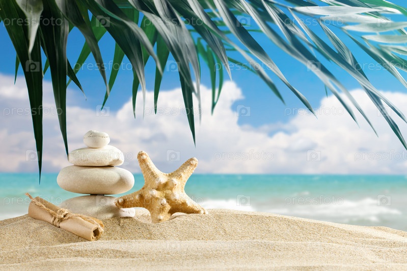 Морские камни и звезда на фоне прекрасного морского пейзажа