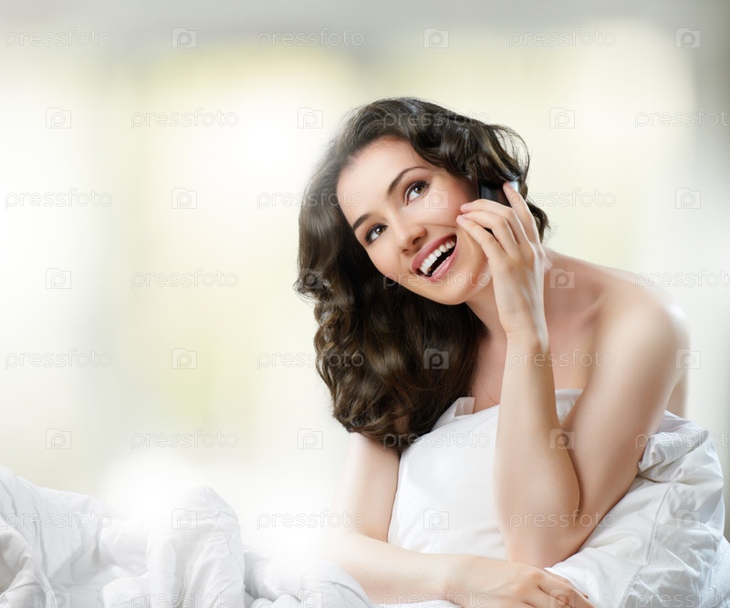 Молодая женщина сидит на кровати