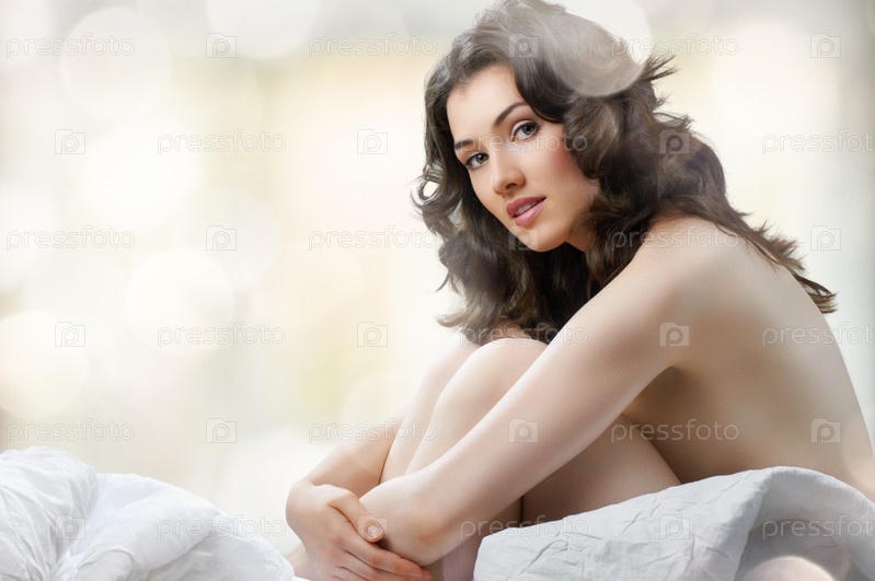 Молодая женщина сидит на кровати