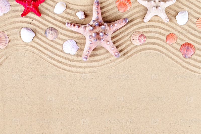 Морской фон со звездами и ракушками