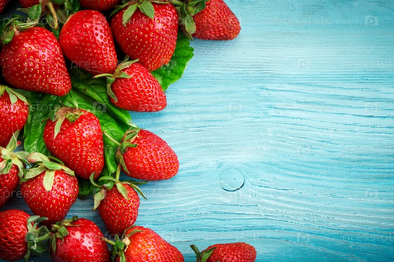 Спелая сочная клубника на деревянном столе