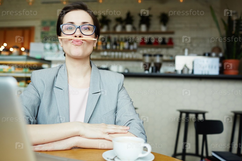 Смешная женщина с карандашом