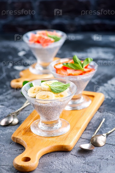 Десерт с фруктами и семенами чиа