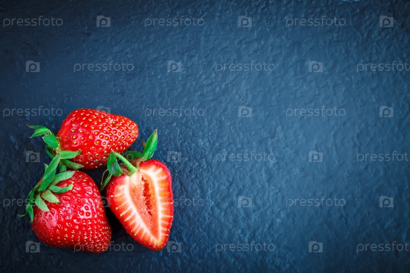 Спелая сочная клубника на каменном столе