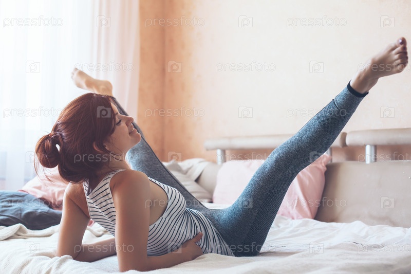 Женщина занимается йогой в постели