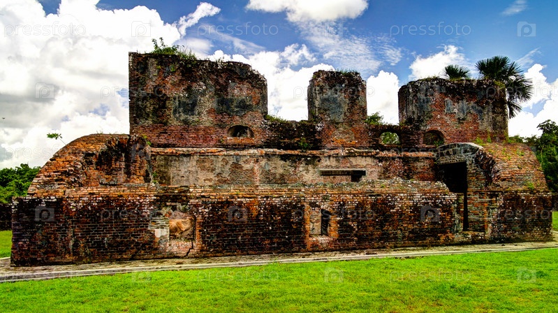 Руины крепости Зееланд на острове в дельте Эссесибо, Гайана