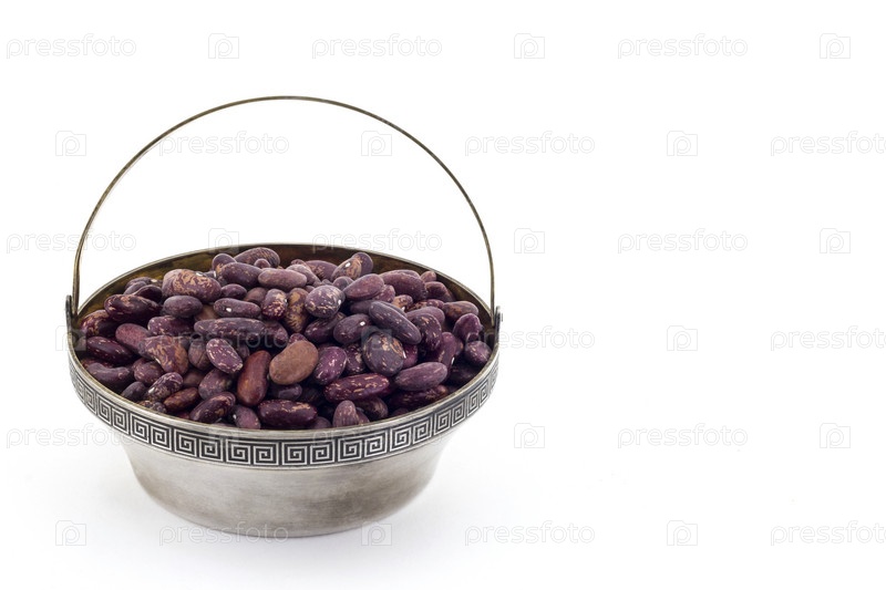 Сырая красная фасоль в серебряной чаше