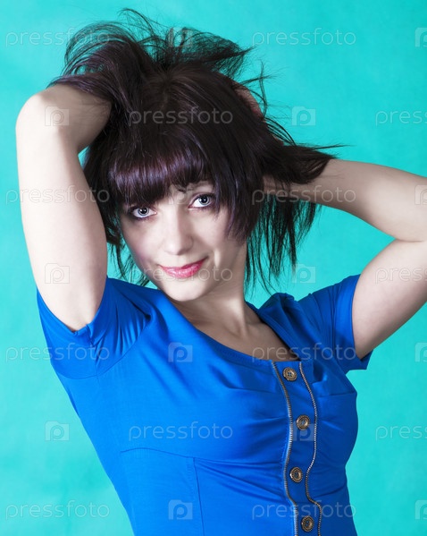 Красивая брюнетка в синем платье
