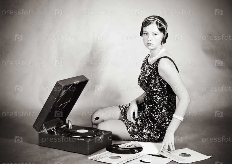 Красивая блондинка с граммофоном